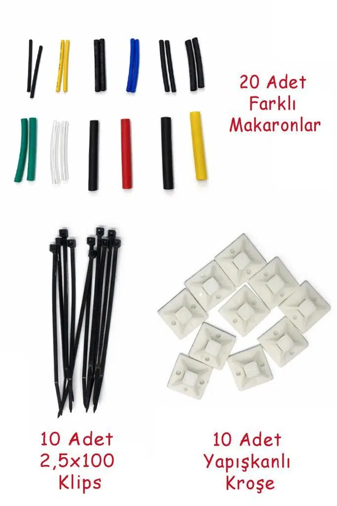 | Etiketler | 40'lı Kablo Sabitleme ve İzolasyon Seti - 20x20 Kroşe - 2,5x100 Kalo Bağı -Makaron |