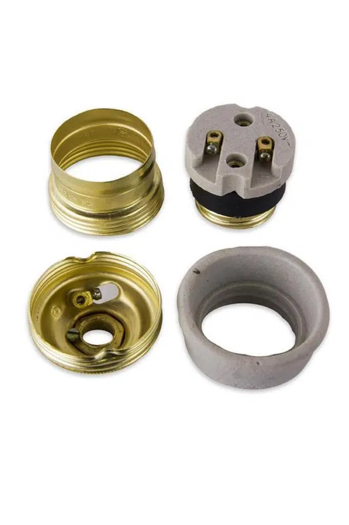Armatürlere montaj için metal tutucu, E27 tabanlı ve porselen manşonlu ışık kaynakları ile çalışmak üzere uyarlanmıştır.