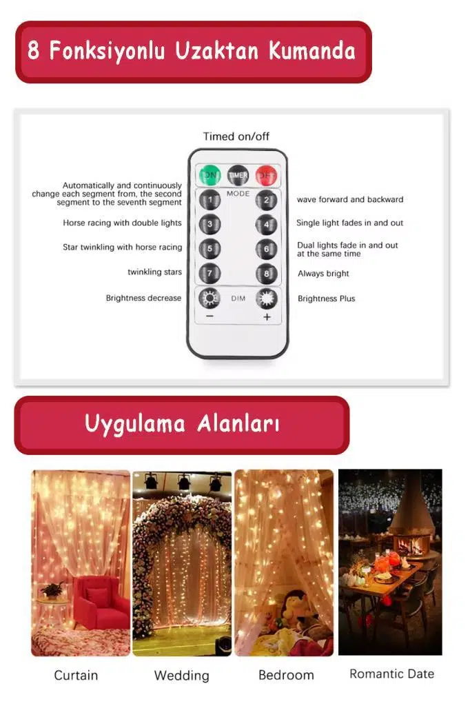 | Etiketler | Şahnet Kumandalı Perde Led Aydınlatma Sarı 3X3M - Dekoratik Peri Işık |