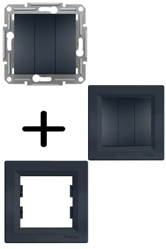 Schneider Asfora Antrasit Üçlü Anahtar - Çerçeveli