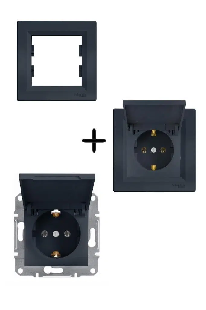 Schneider Asfora Plus Antrasit Kapaklı Topraklı Priz - Çerçeveli