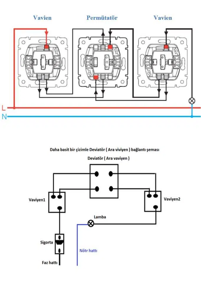 İki yatak başına koyulan vavienler için kapı girişine bir adet permütatör koyarak ışığı hem yatak başından hem de kapı girişinden kontrol edebilirsiniz.