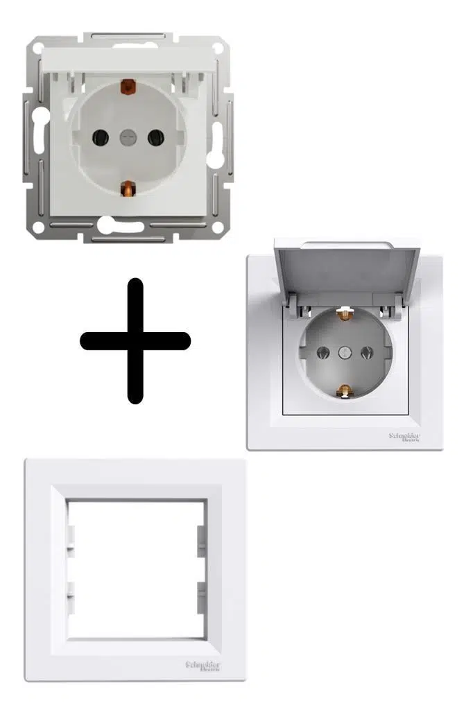 Schneider Asfora Beyaz Kapaklı Topraklı Priz - Çerçeveli