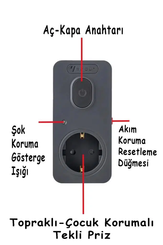 | Etiketler | Seldur Anahtarlı Akım Korumalı Fiş Priz - Siyah Şok Korumalı Tekli Priz |