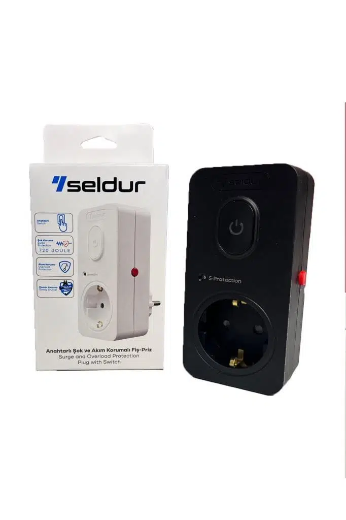 Seldur Anahtarlı Akım ve Şok Korumalı Priz 720 Joule, beyaz ve siyah renk seçenekleriyle her türlü ev veya ofis dekorasyonuna uyum sağlar.