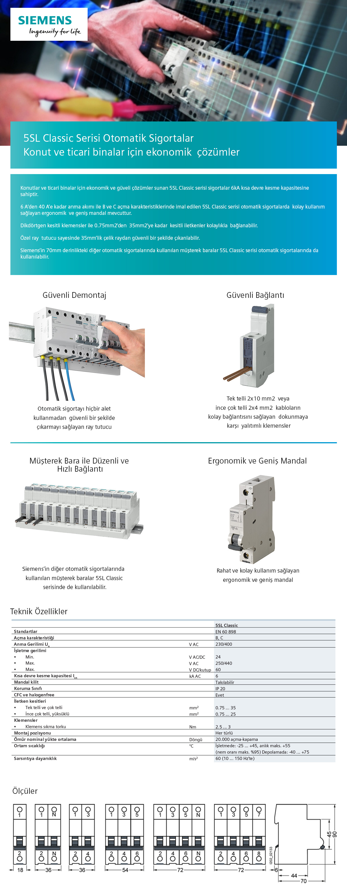 Siemens 5Sl6163-7 1 Fazlı 63 Amper C Tipi (Çabuk Karakterli) 6Ka Otomatik Sigorta
